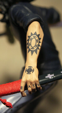 прикольно, что под задравшейся кофтой, которая тоже не лишена воздействия физики, виден ремень на джинсах. это ещё и тем забавно, что ремень есть только у этой фигурки.