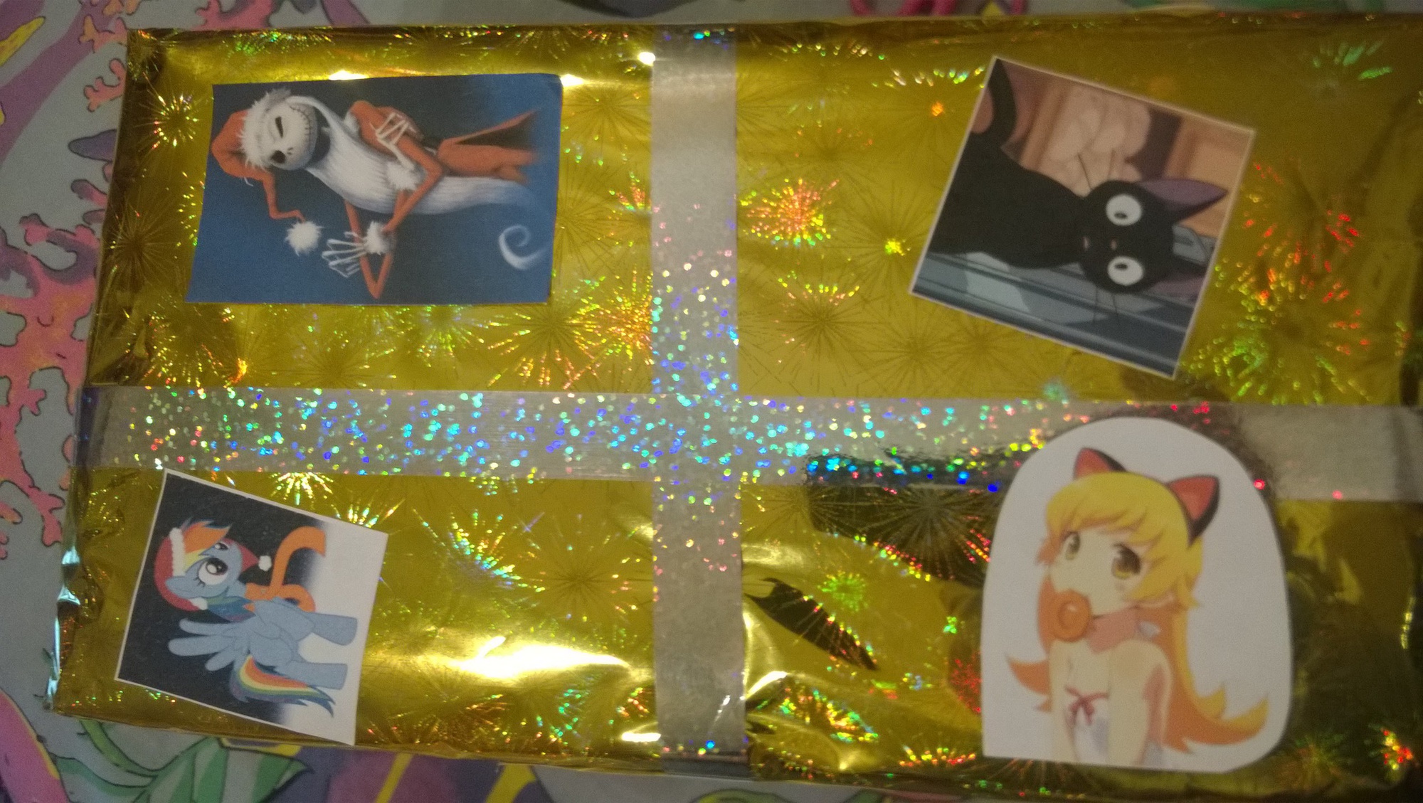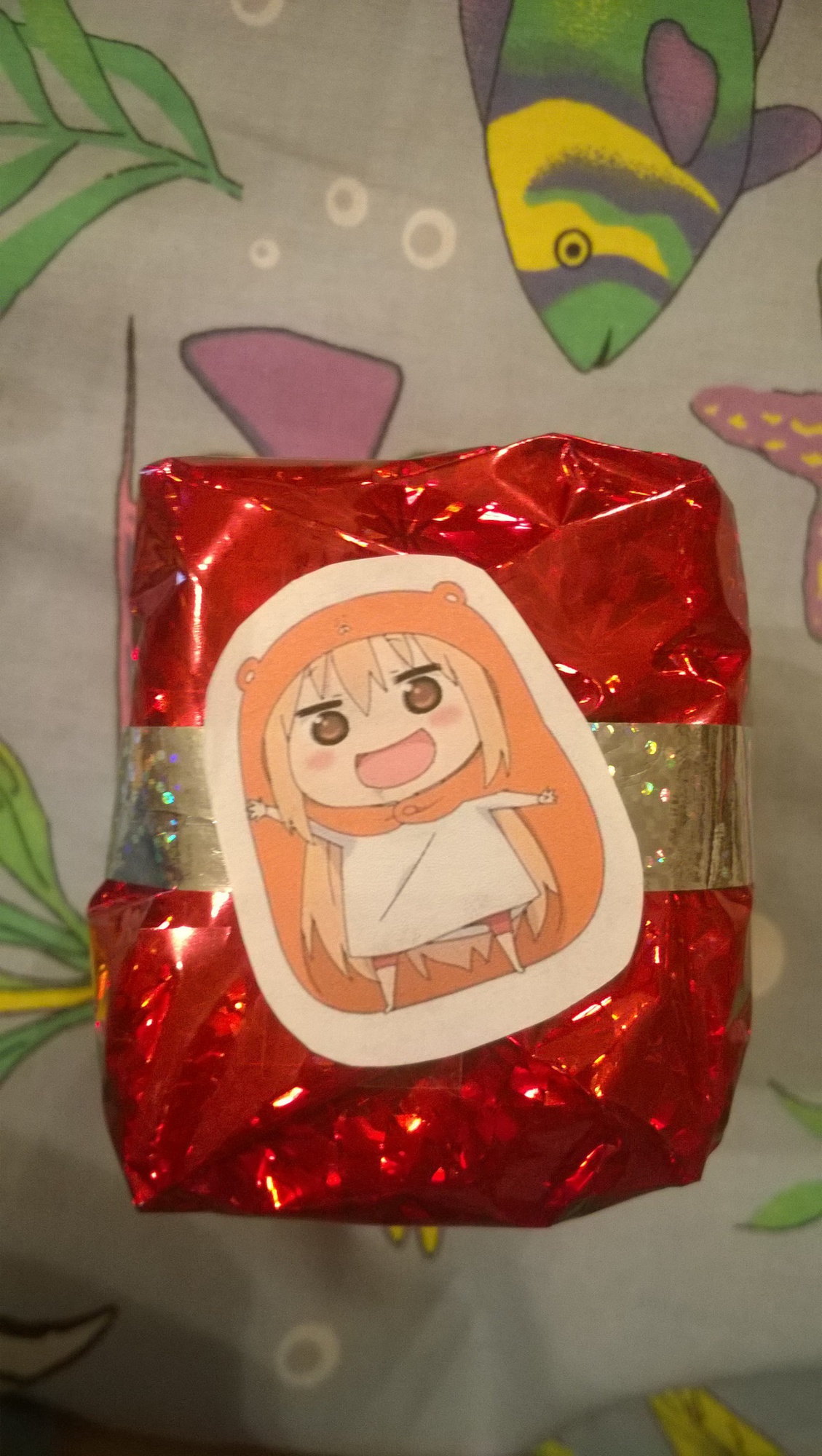 До того как открыть, я думала, что там Нико тк ее две на обертке, но потом увидела Умару и решила, что картинки не относятся к подарку, а просто наклеены те кого люблю ^^ Но когда я достала коробочку