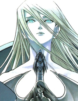 Kisara is the keeper of the Blue-Eyes White Dragon Monster Spirit in the Millennium World arc. Her pale appearance is unusual, and she is mentioned as being from a "foreign country" in the Japanese anime. In the second series anime adaptation, it's stated that as children, Priest Seto saved Kisara from slave traders, and she repaid him by unconsciously releasing her inner dragon spirit after the traders set fire to his village and killed his mother. Years later (their first meeting in the manga), Seto again stumbles across Kisara being stoned because of her pale white skin, deep blue eyes and snow white hair. Shada senses the immeasurably strong strength and power within her — which he deems "equal to that of the Egyptian Gods" — and Seto takes her back to the palace, where he recognizes her as the girl he once saved some years ago. Kazuki Takahashi has said that he originally planned for the story to have much further explored the strong romantic relationship between Seto and Kisara, but in order to meet a deadline these details had to be cut. According to Takahashi, Priest Seto's strong romantic feelings for Kisara are the main basis behind Kaiba's modern-day unusually strong obsession with the Blue-Eyes White Dragon card.