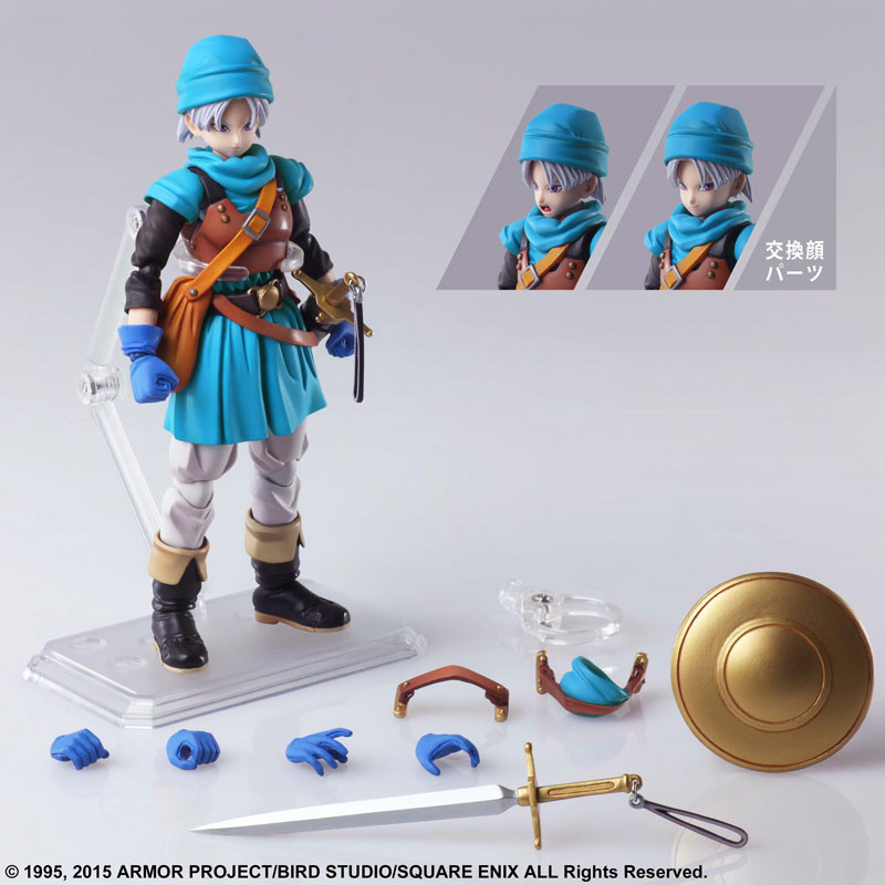 It comes with 2 types of face parts and and hand parts to switch between and Terry's symbolic sword and shield. The sword and shield can of course be posed held in the hands, but in addition the grip part can be used to set the sword in the sheath at the waist and the shield on the back.