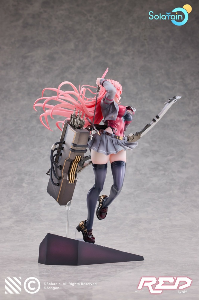 Solarain x Asagon. presents RED, the second figure in the original "Colors:" figure series! Presenting a 1/7 scale figure of RED, the surveyor equipped with a large bow! RED, the investigator who specializes in long-range operations, is posed carrying her large bow. The six arrows stored inside the barrel can be removed. She can also be displayed in light equipment mode like whilst in battle, in her leotard without her outer skirt. Her fiery red hair fluttering in the wind and dynamic pose, as if caught in the moment just before she equips an arrow, create an immersive and impressive display. Just like BLUE from the same series, the figure comes with a special concrete-like base branded with RED's codename. Be sure to add the gentle, intelligent and kind RED to your collection!