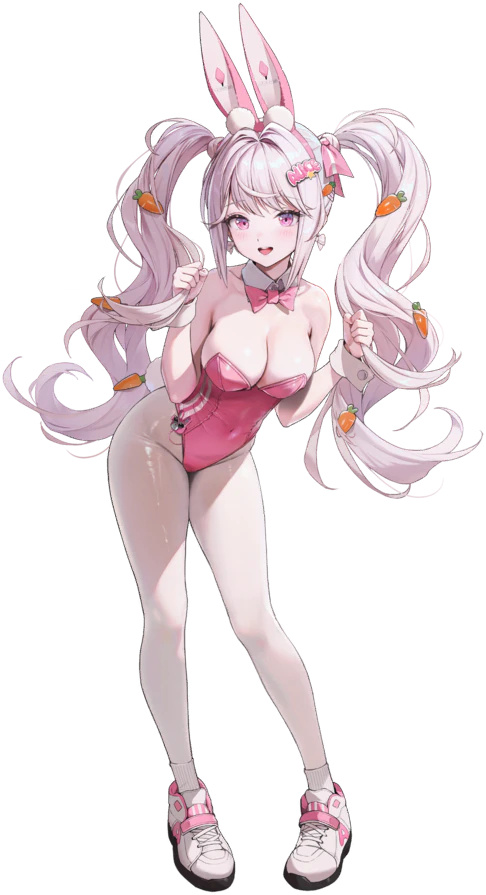 From the popular smartphone game "GODDESS OF VICTORY: NIKKE" comes a Hyper Body figure of Alice: Wonderland Bunny! She comes with four face plates including a standard face, a closed-eyes face, an angry face and a winking face. The set also includes optional parts like a submachine gun and a carrot hug pillow. Commander, be sure to add the adorable and energetic Alice to your collection!